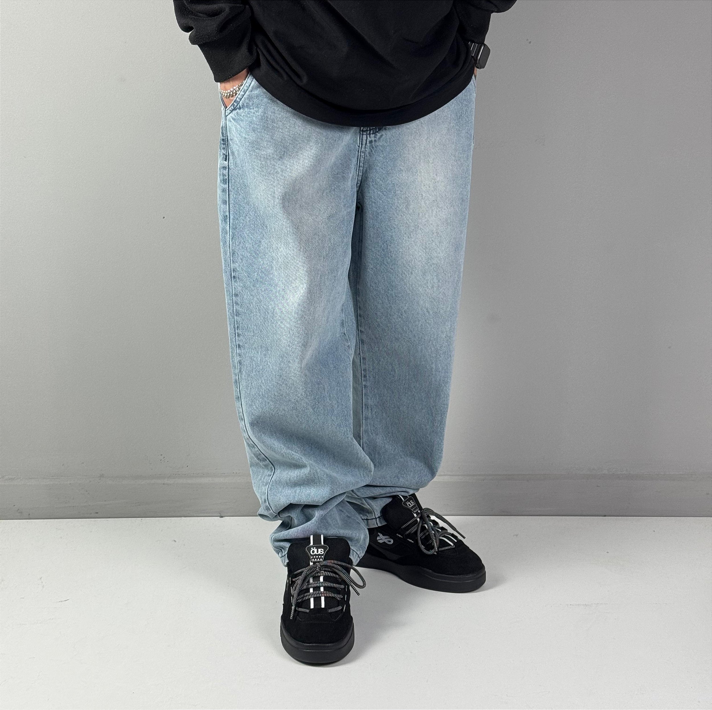 CALÇA NEW LIFE JEANS BAGGY BASICA AZUL CLARA, o modelo perfeito que combina estilo e conforto! Com um corte reto e balão, essa calça é ideal para quem busca o visual autêntico do Streetwear.